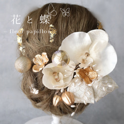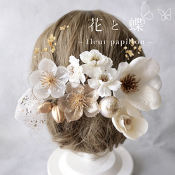 上品なフロスト加工のフラワーやリーフをあわせて華やかな雰囲気に仕上げました。