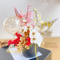 とっても珍しい “折り鶴バルーン“ をアレンジに添えた、上品で華やかな、和モダンなお祝いアレンジメントギフトです…!