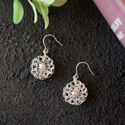 純度99.9%の純銀線をかぎ針でレースのように編んだアクセサリーを作っています。