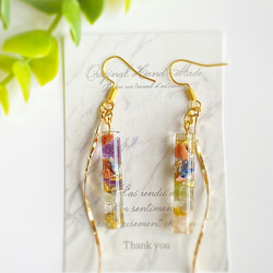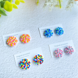 カラフルな色味が目を惹くビーズが主体のピアス/イヤリングです。