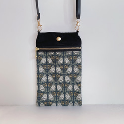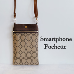 スマホショルダー チェック柄イエロー×ブラック/ポシェット スマホポーチ/合皮ショルダーストラップ 長さ調整可能◎ギフト