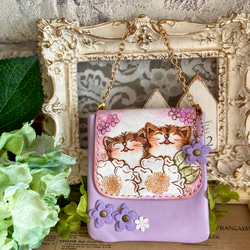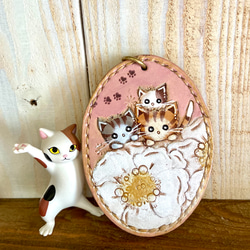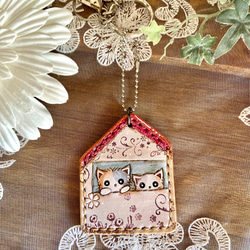 深みのあるワイン色の牛革で作った猫ちゃんカードケース♪