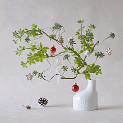 [Sサイズ]来年も飾れる♡飾りと器が選べる*本物のヒムロスギとたっぷりの木の実で作る北欧風卓上クリスマスツリー28cm
