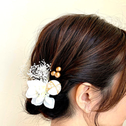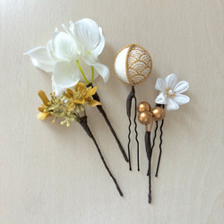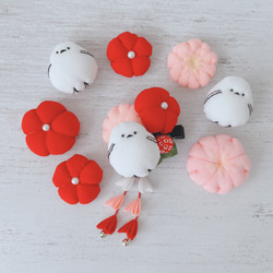 ☆上記の3点に加えてただいまつまみ細工のアイボリーのお花飾り(花径 約4.5cm)も同封しています♪ (写真6、7枚目)