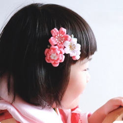 つまみ細工 髪飾り クリップ3点セット 七五三 紅梅