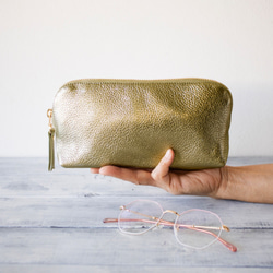 アーチ型のファスナーは物の出し入れもしやすく小ぶりながらスマホ、財布等必要なものはしっかり収納出来るサイズです。