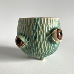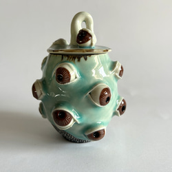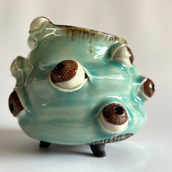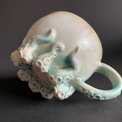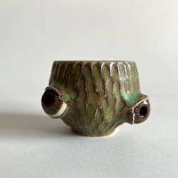 深い緑色の釉薬ですが、焼成段階で少し還元もかかりほんのり赤く発色した部分もあります。