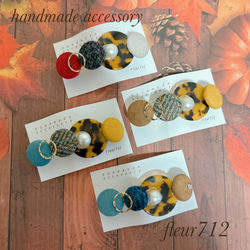 ボタンバレッタ ヘアアクセサリー 秋冬 ハリスツイード ベージュ べっ甲 ④