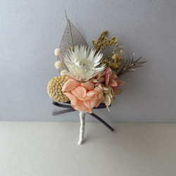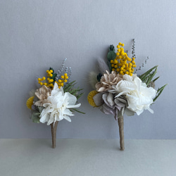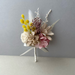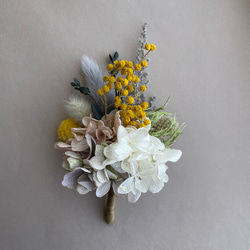 ミモザはアーティシャルフラワーを、その他はドライフラワーとプリザーブドフラワーを使用しております