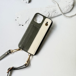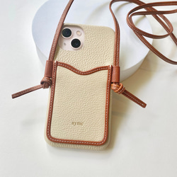 手帳型スマホケース バイカラーレザー 名入れ無料 ショルダー付き イニシャルが入れられる IPHONEケース