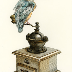 水彩画を描く際に水彩紙を水に浸けてからパネルに張り付けてうねりを押さえる「水張り」という方法がありますが、その際に水ではなくコーヒーを使用することで、敢えて用紙を薄い茶色に染め色ムラを出して古びた風合いを狙っています。