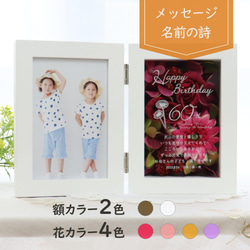 写真とメッセージが入る素敵なフォトフレーム。退職や卒業、卒園の贈り物にもピッタリのオシャレなデザインです。メッセージをはじめ、寄せ書きとしてもご利用いただけます。