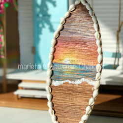 木材にハワイアンチョークアート【オイルパステル】で描いたアルファベットのH