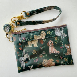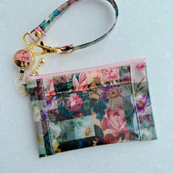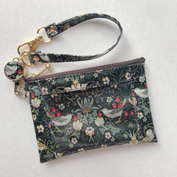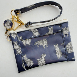 リバティプリント「ミャオウ 」のラミネート生地で作った、パスケースポーチとリールストラップのセットです。