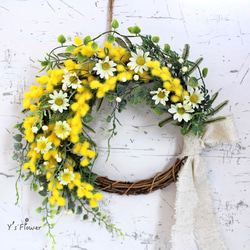 ・ミモザ、スノーボール、ダスティーミラー、その他小花、グリーン(造花)