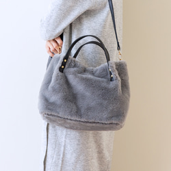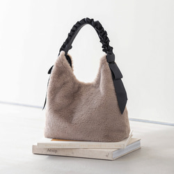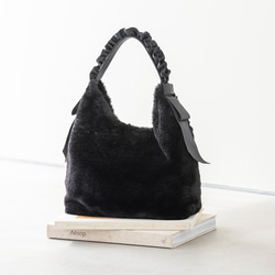 一年中を通して使えるフェイクレザーのフリルバッグ。