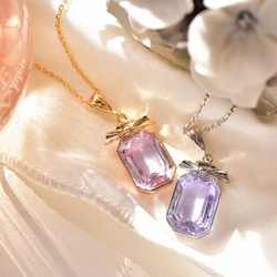 Swarovskiはアレキサンドライトカラーで、光源によりラベンダーとライトブルーがお楽しみいただけます。