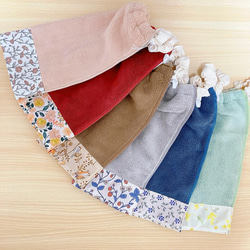 ご希望の方には、オプションで右下・生地被りでお名前を書くタグをお付けしております。アイロンで接着後、ミシンで縫い付けます。キナリ・カス残しあり