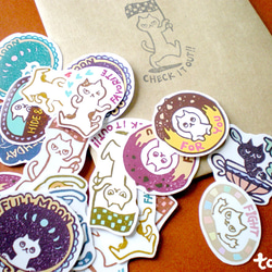 猫のデザインは6種類。薄手の紙、しっかりした厚みの紙、画用紙風の紙の3種類にプリントしてあります。
