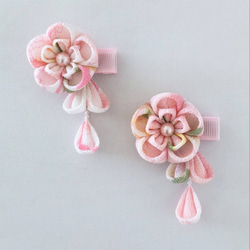 つまみ細工/髪飾り/ヘアピン/ヘアクリップ/朱赤