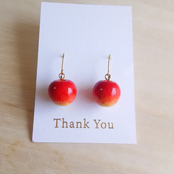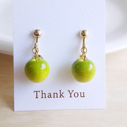 樹脂粘土で製作した米茄子をモチーフにしたぶら下がりタイプのイヤリングです。
