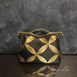 1点限定♡4種類パッチワーク大迫力のシック高級西陣帯地で極上ブラック緑ゴールド系上品パーティーバッグフォーマルバッグ