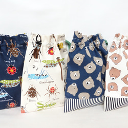 モノトーンカラー4色展開の持ち運びに便利な巾着バッグタイプのお弁当袋です。