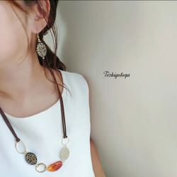 立体感のあるデザインのイヤリングと、サークル型のシェルを合わせたお洒落なイヤリング