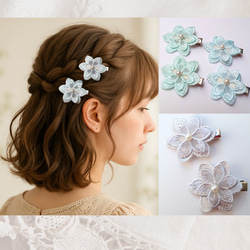 4つセット 蝶々レースのヘアクリップ 二枚羽 ブライダル・卒業式・成人式・発表会など特別な日に
