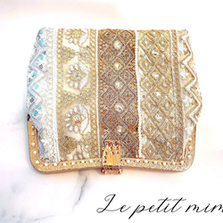 新作貝殻シリーズ♡シェルの輝きシルバーホワイト♡上品な大人シルク混の気品漂うフォーマルバッグ パーティーバッグミニバッグ