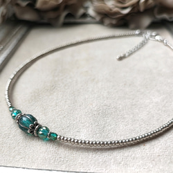 *ネック部分は、茜色で1ミリ程のとても細かなシードビーズを、しなやかで適度に張りのあるナイロンコートワイヤーに通しています。きれいな円の状態でお付けできます。