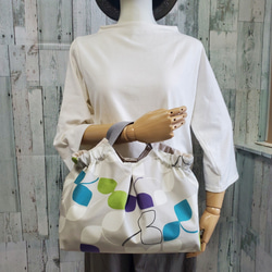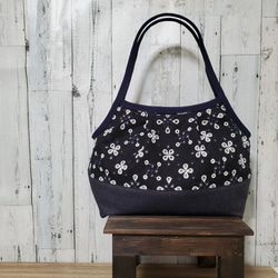 内生地にはパリッとした帆布生地、切り替えマチ底部分にも、厚手のデニム生地を使用して多少の重さにも形崩れしにくい設計にしています。