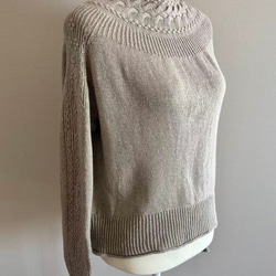 優雅な白の手編み半袖ニット 超長綿100%使用