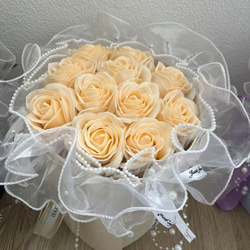 ※プレゼントに最適なソープフラワーの花束です。ほのかに石鹸の香りがする、石鹸素材から作られた造花なので、生花に比べて、長く鑑賞が楽しめます。