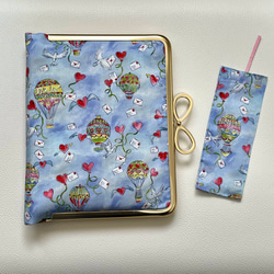 がま口ブックカバー450ページ対応*リバティ&ガーデンラビット*すずらんとうさぎ*ローズ•マリー*りぼん結びピンクG