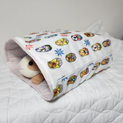 ダイベッソー(幼児用風呂椅子)がすっぽり入る寝袋です、丸すぎる商店 しばこさんオリジナル柄の生地を特別に仕入れて作りました。