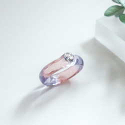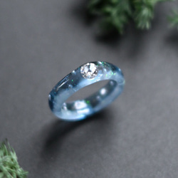 まるで水を纏ったかのようなうるうるした樹脂に、キラリと光る1粒のジルコニアが美しい樹脂ring