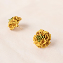 秋の訪れを告げる金木犀をモチーフにした、上品で温かみのある革花スタッドピアス・イヤリング。