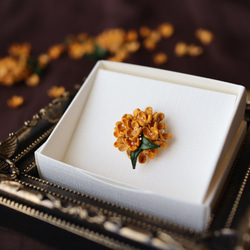 こちらの作品は、金木犀の花を思わせる柔らかく温かみのあるオレンジ色が特長のアクセサリーです。