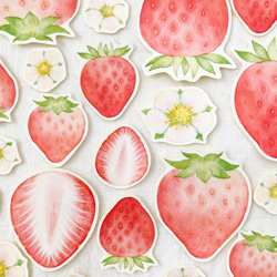 haruiroオリジナル水彩絵画のイチゴを、フレークシールにしました。ラッピングや、日記や手帳のデコレーション、コラージュなどにどうぞ。