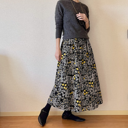 【サイズSから4L】北欧柄 1枚で履けるギャザースカート 黒