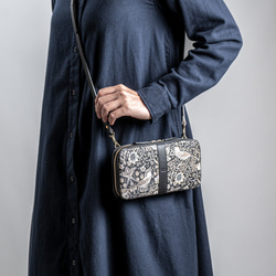 コンパクトな見た目ですが、広い底マチ形状により、見た目以上に収納できます。また、バッグ内部には6つの大小のポケットを備えており、スマートフォンやリップ、ペンなどを機能的に収納できます。さらに、自宅や車のキーを取り付けておけるキーリングも付属しています。