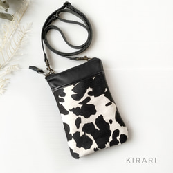 なめらかで個性的なホルスタイン柄のハラコ本革に、