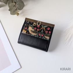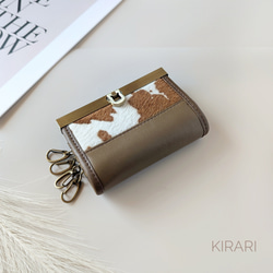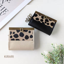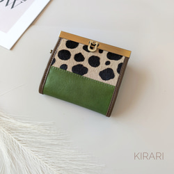 お札が折らずに入るミニ財布◆ホルスタイン柄ハラコ本革×ボルドー本革◆コンパクト 二つ折りレザー財布 直線口金 こっくり