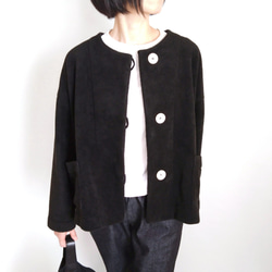 かなり柔らかい生地なので、襟まわりは見返し始末、芯を入れてありますので型崩れしにくく、線がキレイに出ます。
