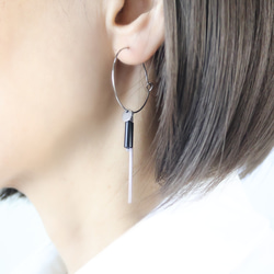 3点セット シンプルに輝く!オニキス&ステンレス つけっぱなし ミニピアス バーピアス アレルギー対応 天然石 シルバー