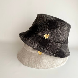 ふんわりキャスケット*クラシカルなコットンツイード*チェック柄*選べるサイズのレディース帽子