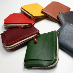 ネイビー グリーン ワインレッド イエロー レッド ブラウン ブラック コンパクト カジュアル レイクシャイニー キップ革