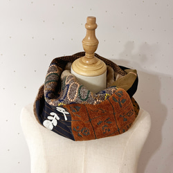 ミナペルホネン マスタードカーキ系パッチ ボリュームスヌード もこもこスヌード フワフワボア 冬支度