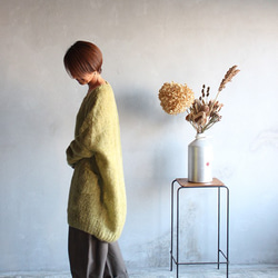 ふんわりと驚くほどに軽いモヘアを使用した手編みのセーターです。